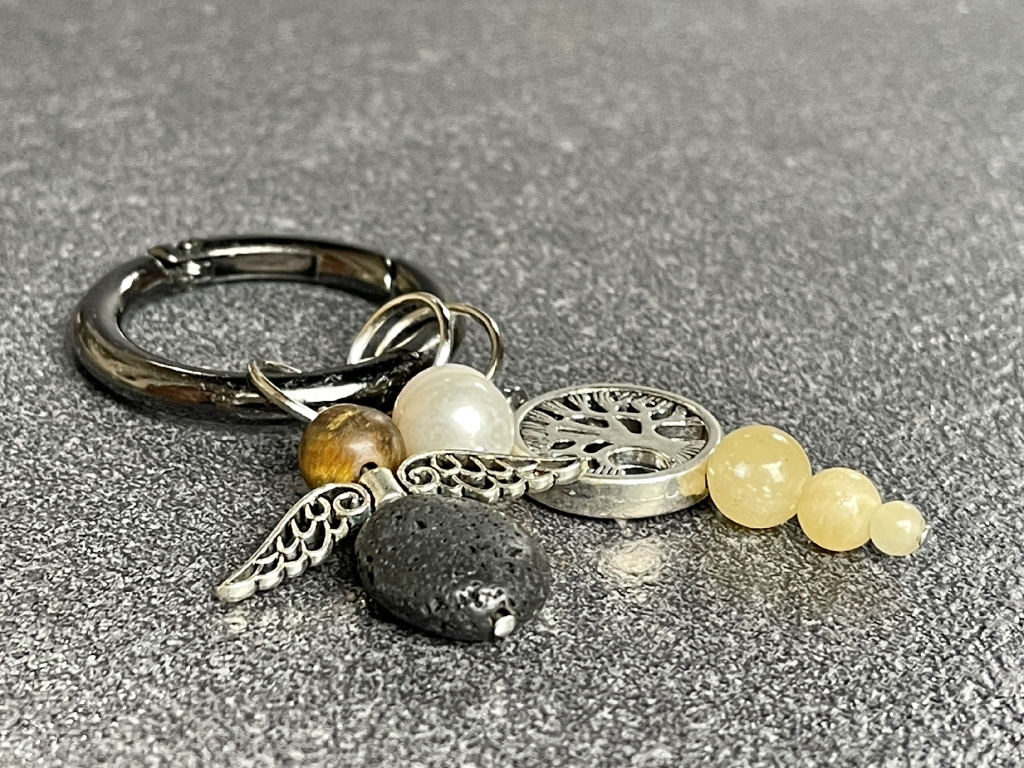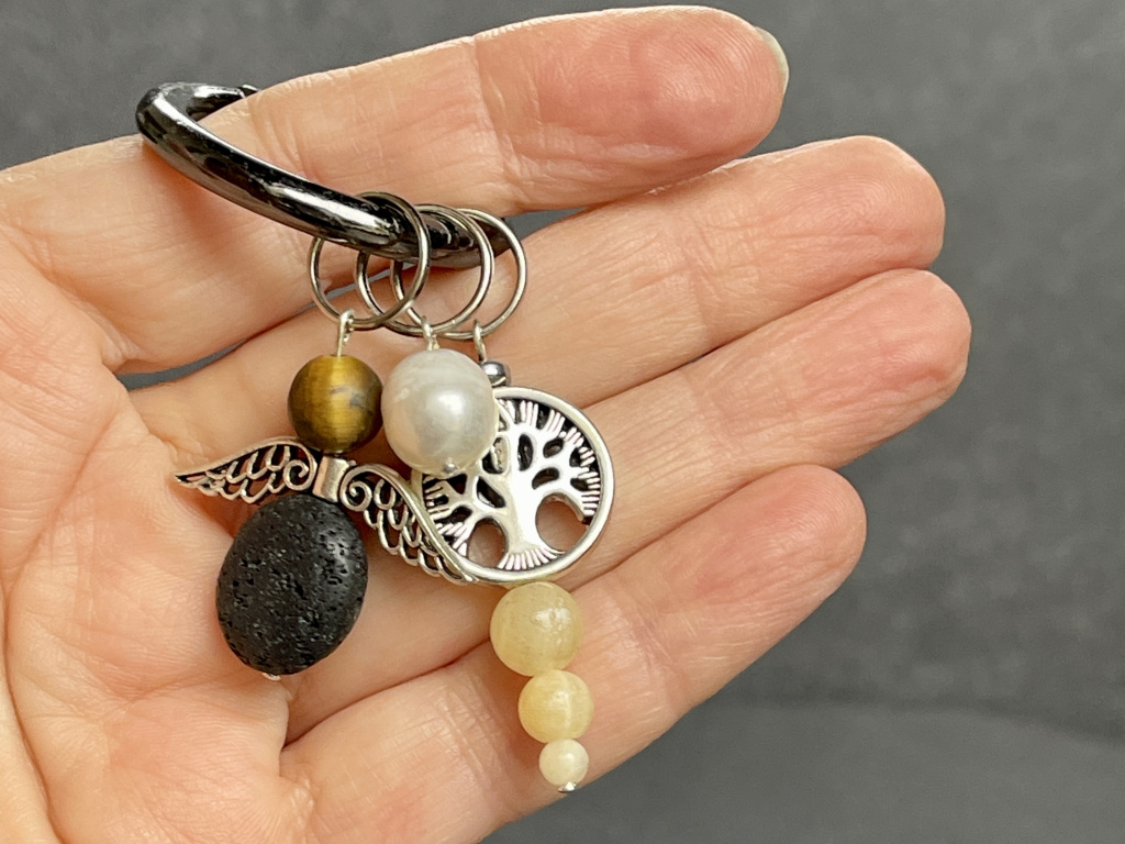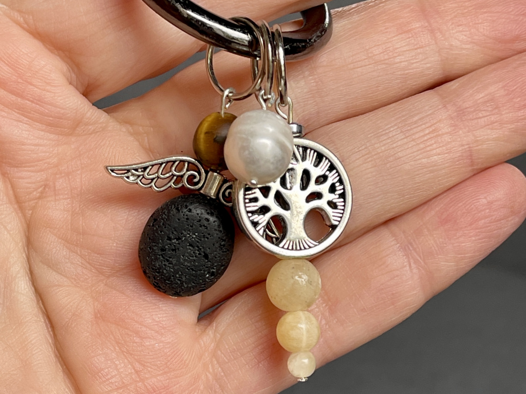 Našim multifunkčním přívěskem přidáte osobní nádech k jakémukoliv předmětu - klíčům, kabelce, batohu, nebo dokonce obojku vašeho oblíbeného mazlíčka. Tři různé přívěsky můžete nosit samostatně nebo je kombinovat dohromady, jak vidíte na našich fotografiích. Každý kamen má svou jedinečnou energii a symboliku, která vám může být v životě oporou.