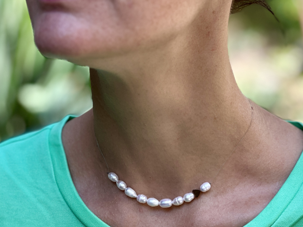 NÁHRDELNÍK Z ŘÍČNÍCH PEREL A HEMATITU
