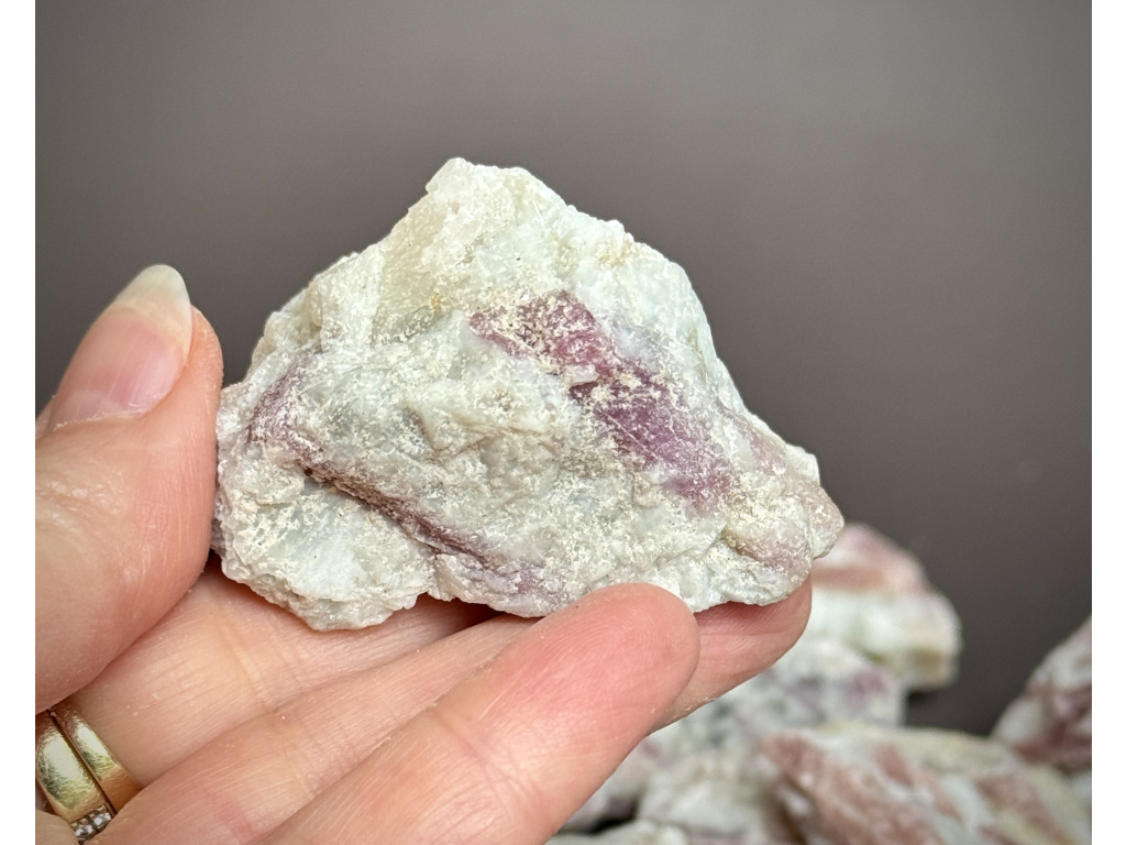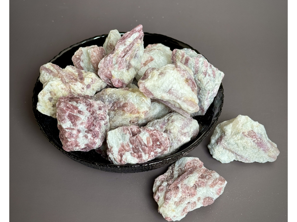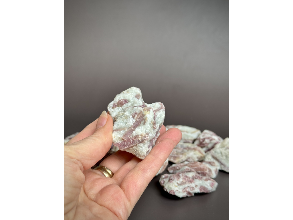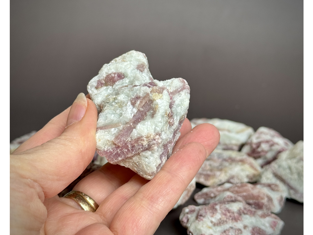 Surový rubelit, růžová odrůda turmalínu, okouzlí jemnými odstíny od malinové po světle růžovou. Jeho přirozená, neleštěná podoba působí syrově a autenticky – jako malý kus živé země, který přináší teplo a dobrou náladu.