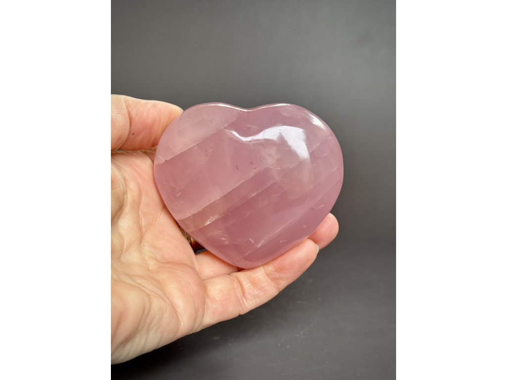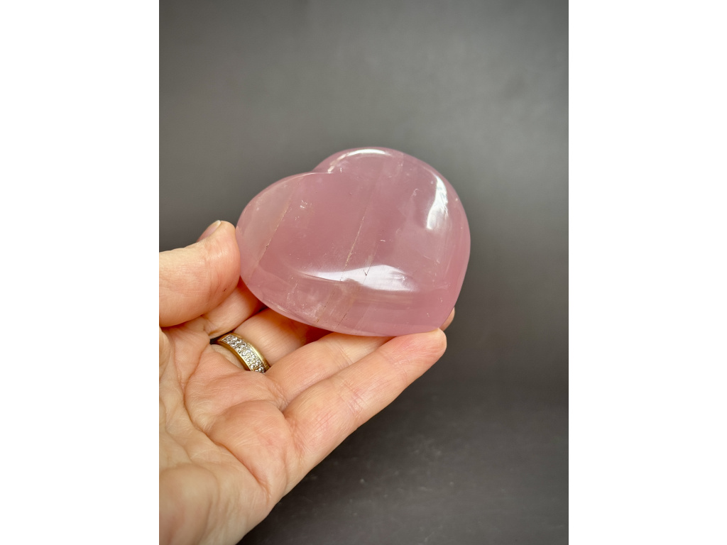 Toto jedinečné srdce z přírodního růženínu vyniká svou jemně růžovou barvou a hebkým leskem. Působí jako talisman otevřenosti, empatie a klidu. Symbolizuje sílu lásky – k sobě samým, k druhým i k životu samotnému. Každý pohled na něj připomíná, že skutečná síla pramení z laskavosti.