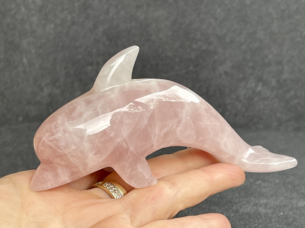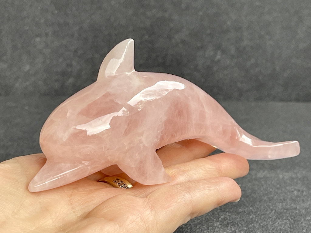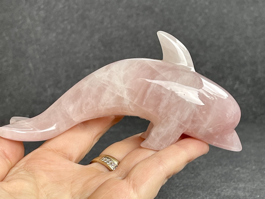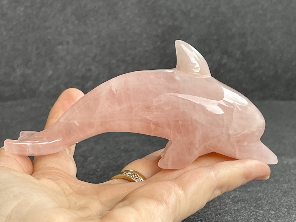 Dokonale opracovaný růženín do tvaru delfína, je krásným symbolem mořského světa, který svého majitele chrání před negativním vlivem z okolí a velmi silně podporuje vnitřní lásku k sobě samému. Tento kousek je více než jen dekorace, je to symbol síly, odpouštění a sebelásky. Zároveň nabízí také krásný způsob, jak vyjádřit svou individualitu a jedinečnost.