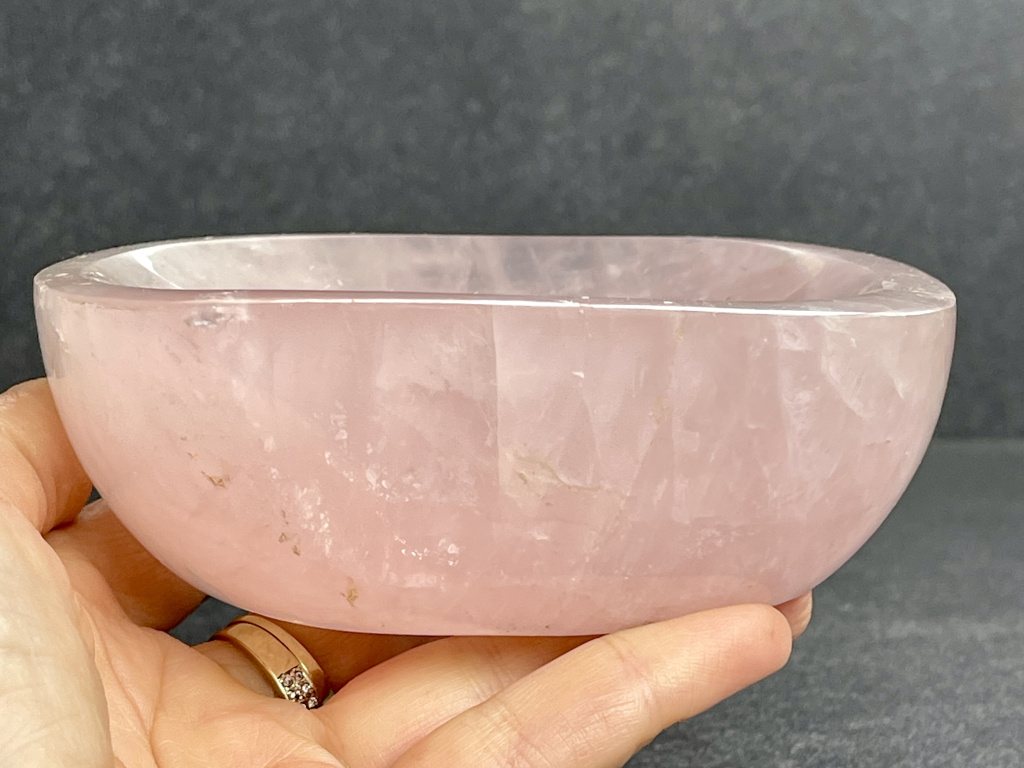 Miska z růženínu je krásný a energeticky silný doplněk, který můžete využít jak dekorativně, tak prakticky. Misku lze použít pro ukládání šperků, drobných krystalů nebo jiných cenností, které chcete energeticky chránit. Díky svým uklidňujícím vlastnostem pomáhá harmonizovat prostor a vytváří kolem sebe příjemnou, láskyplnou atmosféru. Ideální je také pro rituály nebo meditace, kdy do ní můžete vložit své oblíbené kameny nebo předměty, které chcete energeticky nabít.