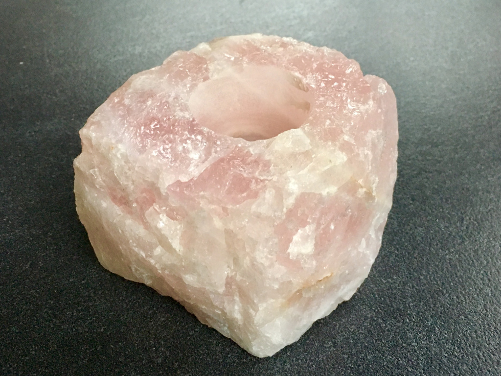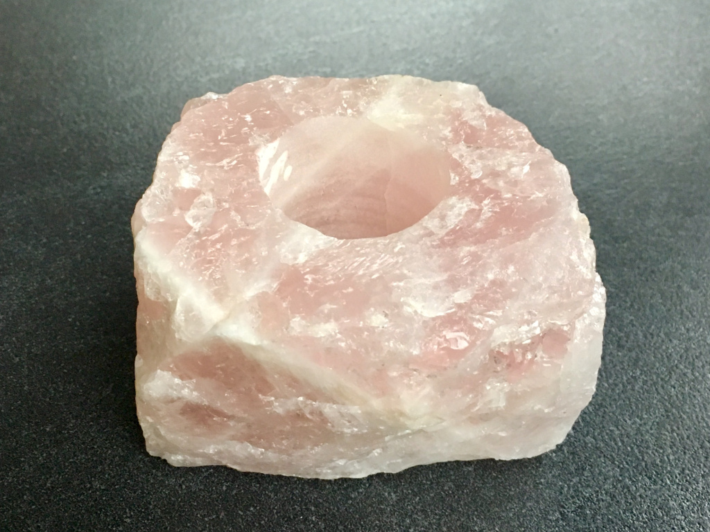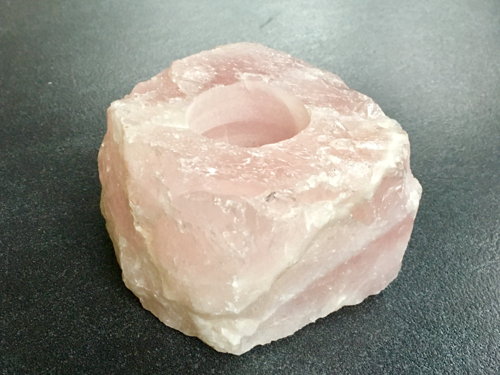 Tento svícen je vyroben z neopracovaného růženínu, krásného růžového minerálu známého jako kámen lásky a harmonie. Každý kus je jedinečný, s přirozenými variacemi v barvě a tvaru, které odrážejí dokonalou nedokonalost přírody.