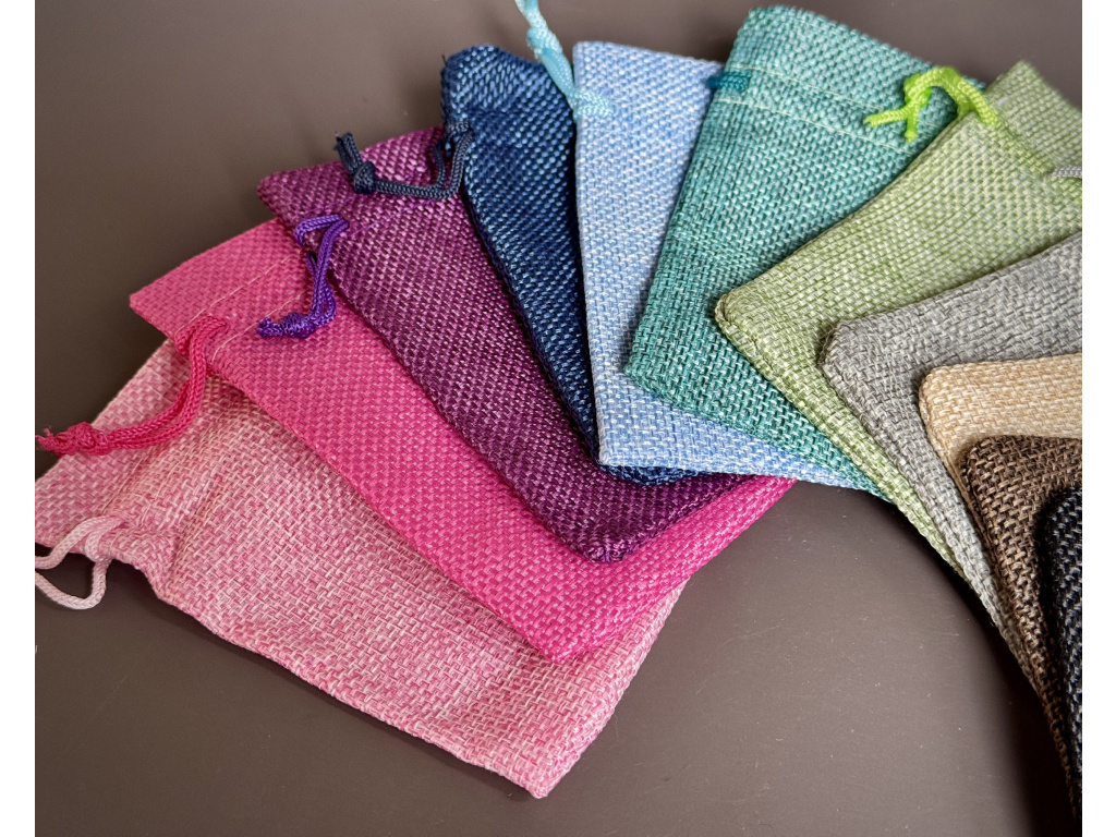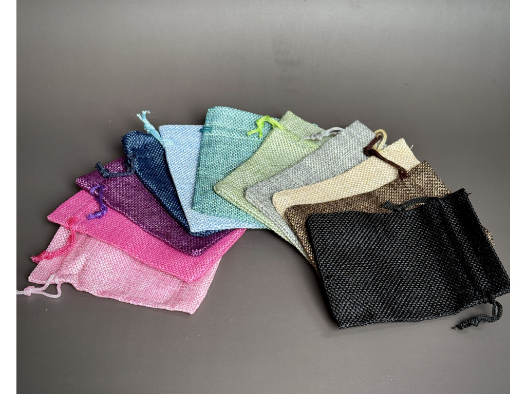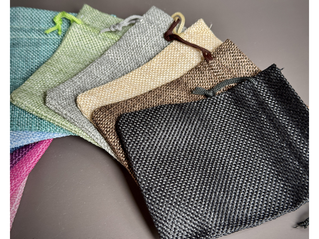 Stylové dárkové sáčky z jemné polyesterové tkaniny se stahovací šňůrkou. Skvělé pro uložení a darování minerálů, šperků, přívěsků nebo malých talismanů. Díky decentnímu tkanému vzhledu působí přirozeně a vkusně.