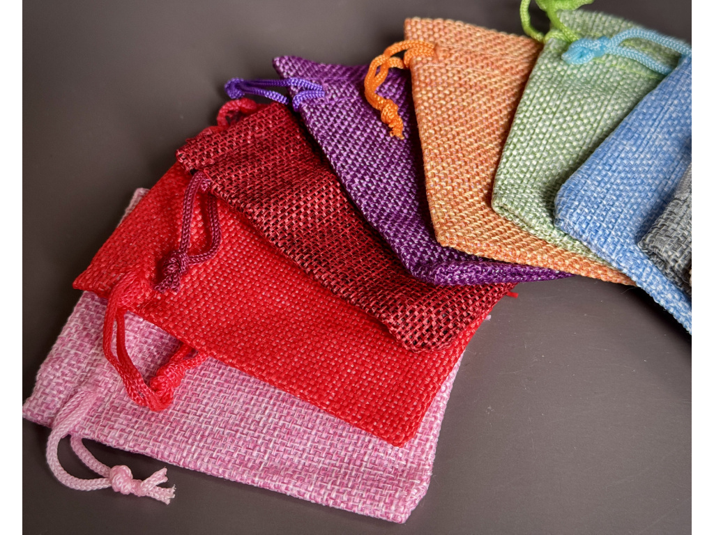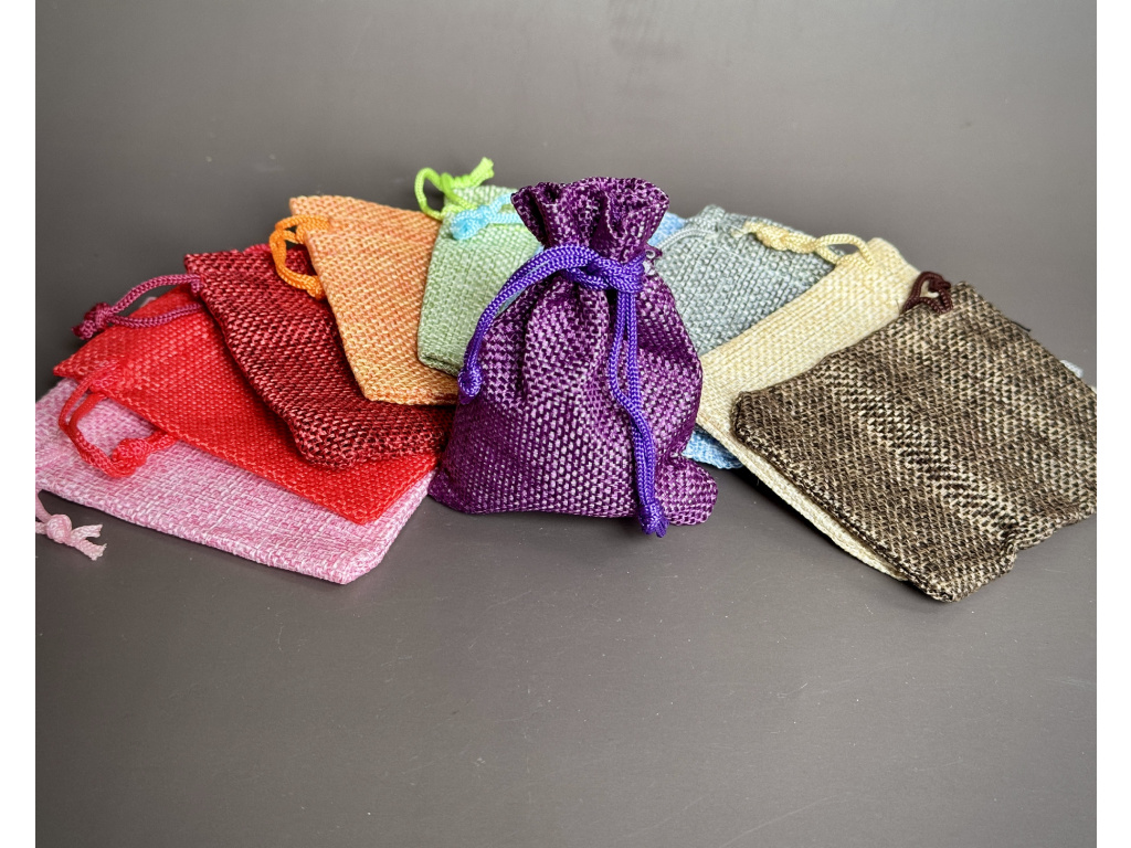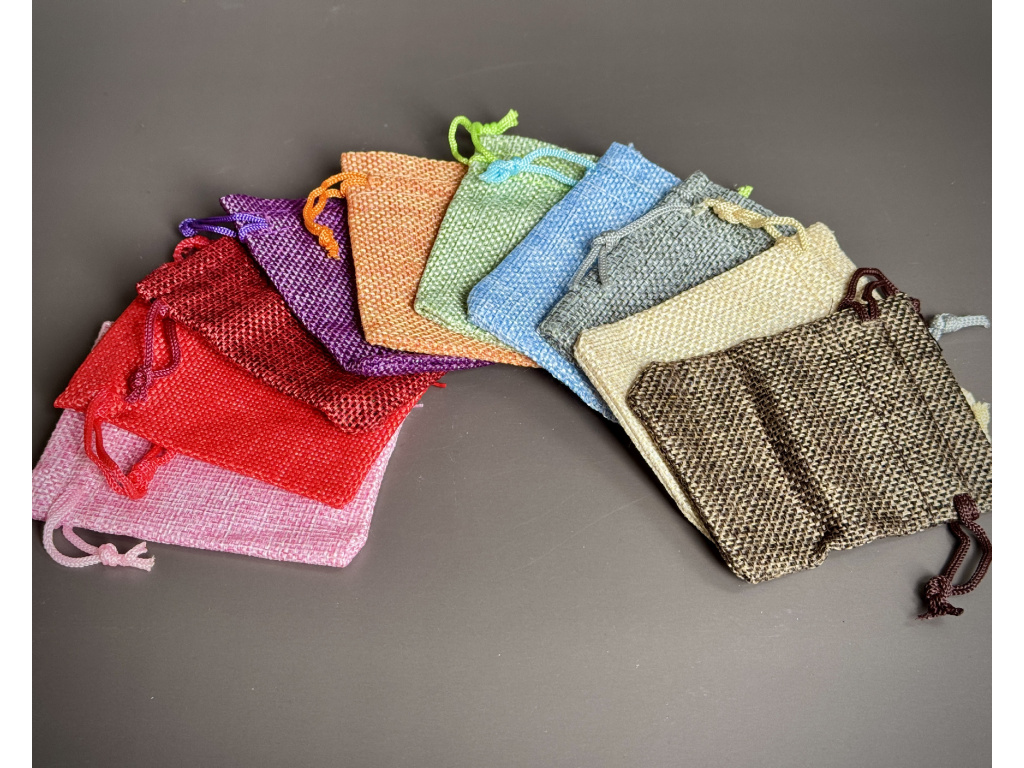 Stylové dárkové sáčky z jemné polyesterové tkaniny se stahovací šňůrkou. Skvělé pro uložení a darování minerálů, šperků, přívěsků nebo malých talismanů. Díky decentnímu tkanému vzhledu působí přirozeně a vkusně.
