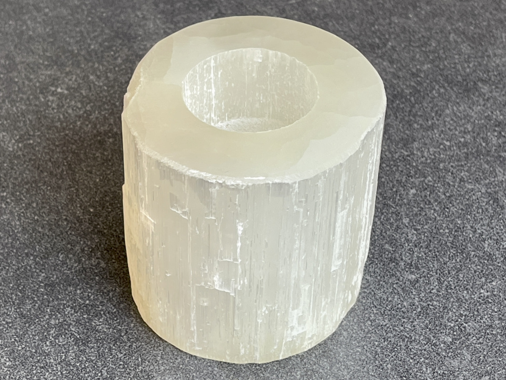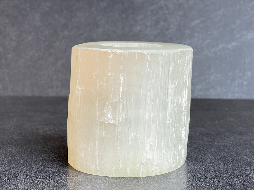 Svícen ze selenitu je skvělým doplňkem pro každý interiér. Selenit je krystalická forma minerálu sádrovce, která se vyznačuje bílou barvou a průhledností.