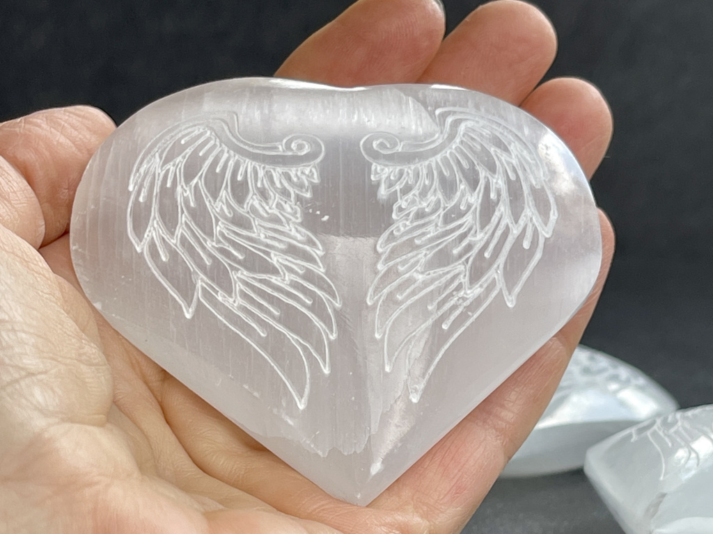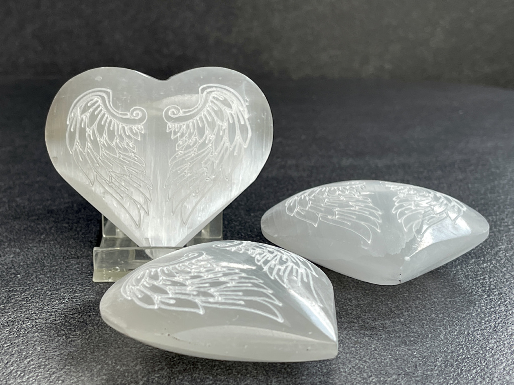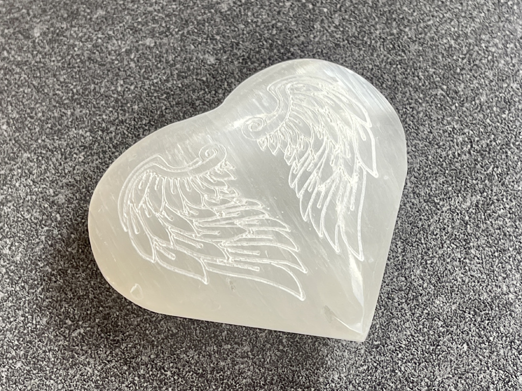 SELENIT BĹÝ SRDCE S GRAVÍROVÁNÍM ANDĚLSKÝCH KŘÍDEL