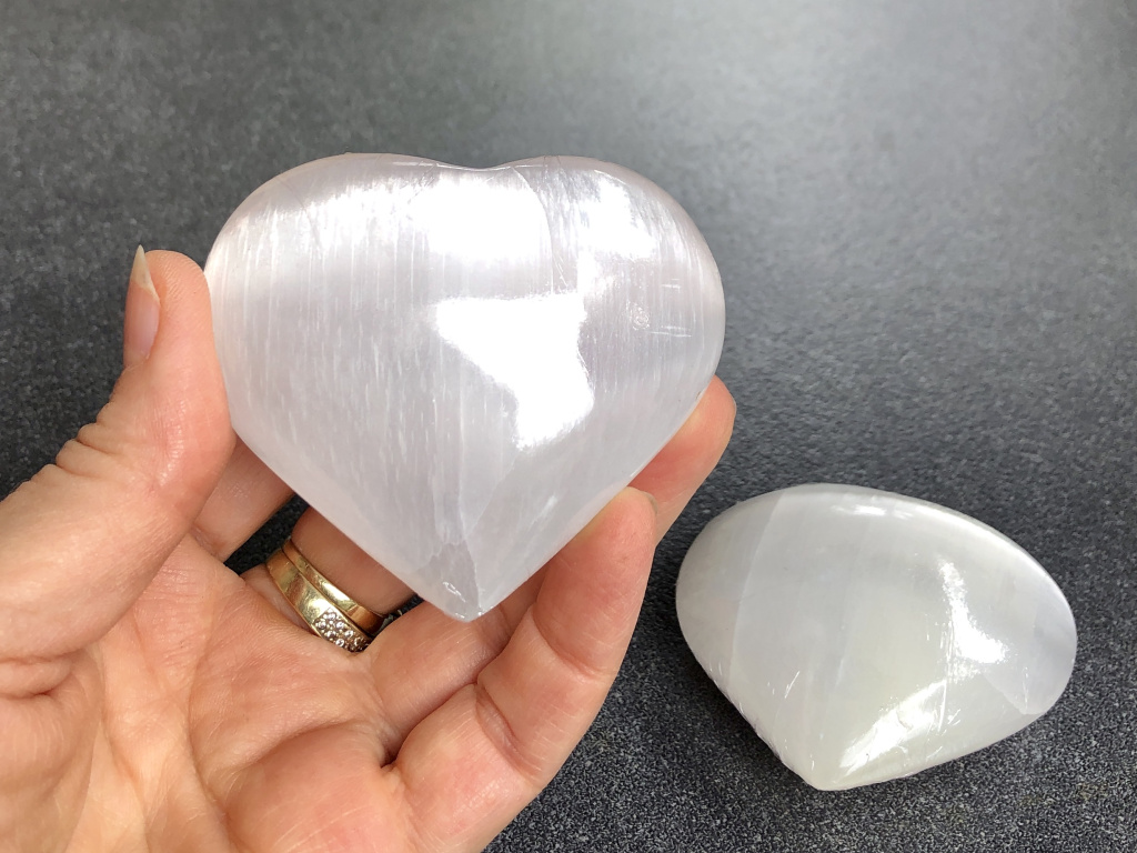- Tvar srdce umocňuje účinky selenitu – propojuje energii čistoty, lásky a ochrany.
