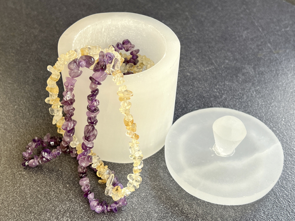 Selenit skvěle čistí a dobíjí energii ostatních kamenů. Funguje jako přírodní harmonizátor, který obnovuje jejich sílu a odstraňuje negativní energii. Stačí na něj položit ostatní minerály a selenit jim vrátí jejich energii i čistotu.