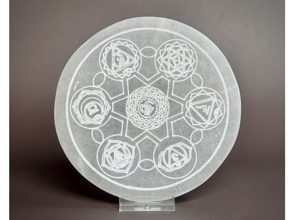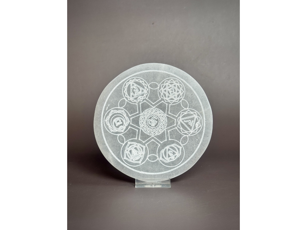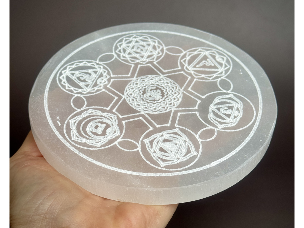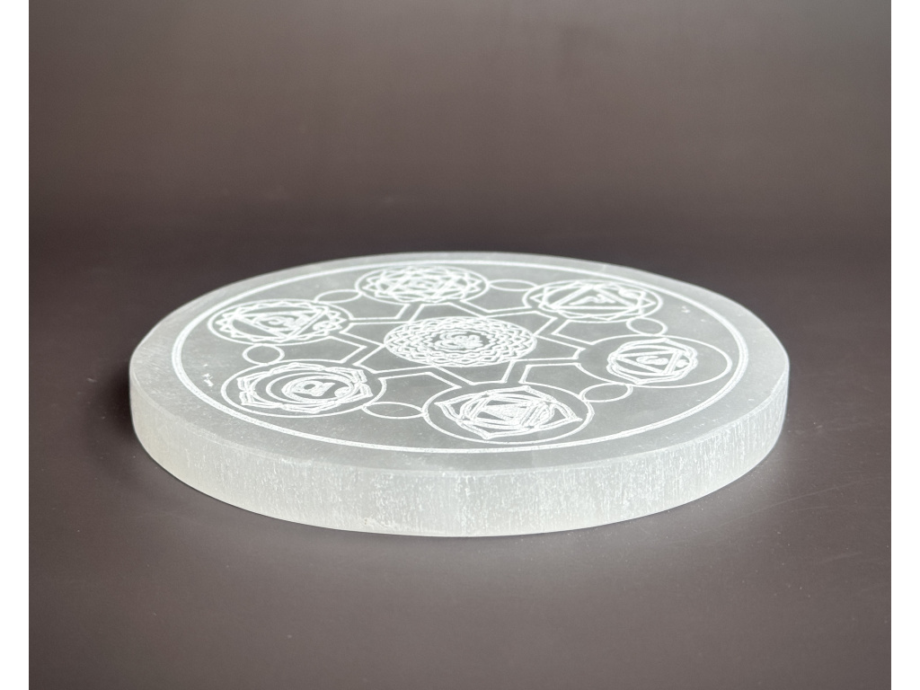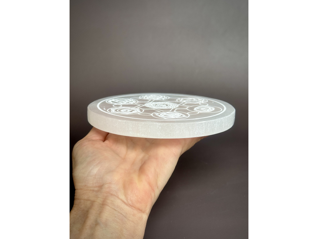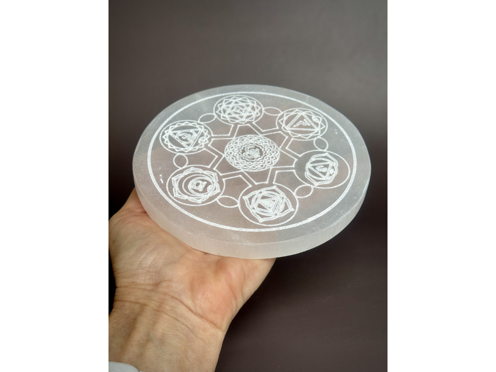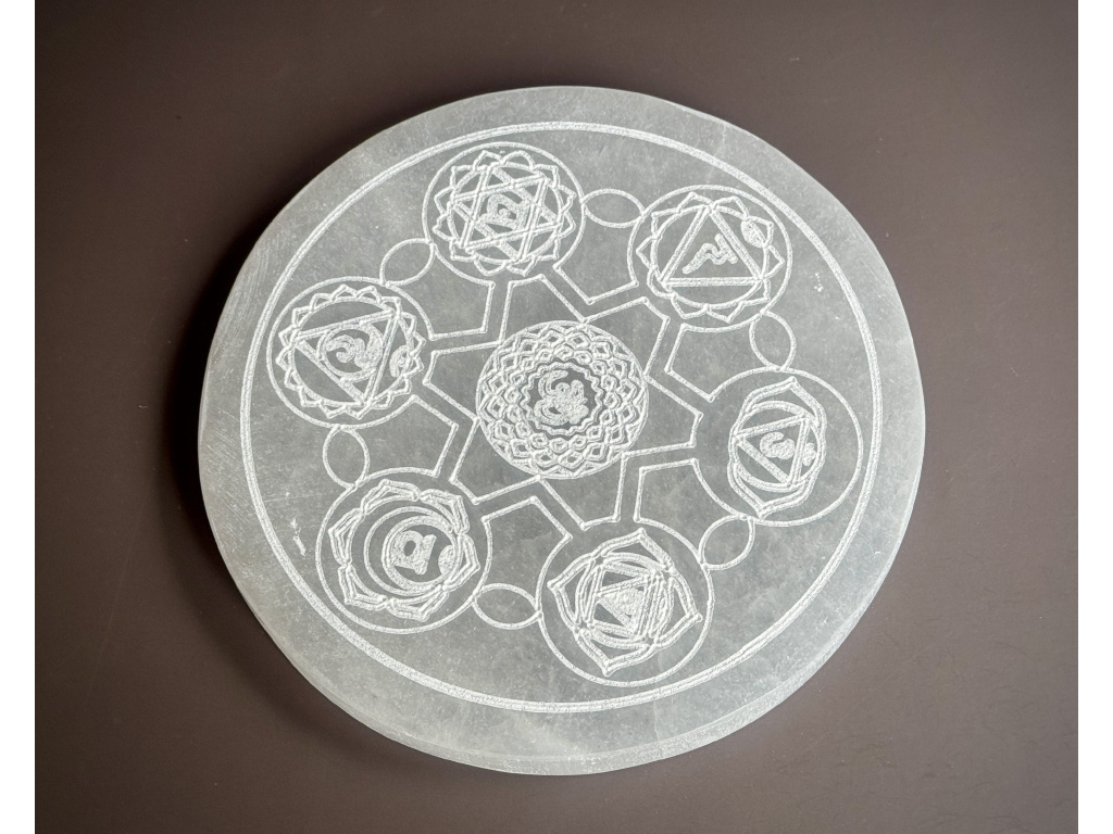 Nabíjecí selenitová destička - "ČAKRA" - průměr 14 cm