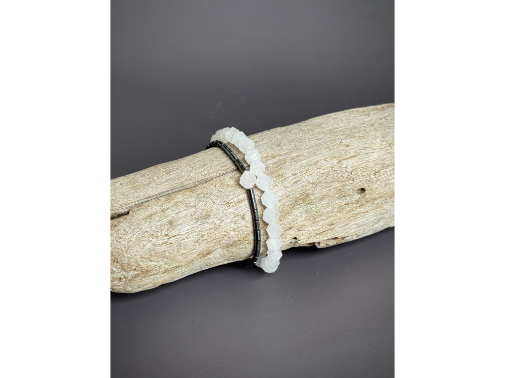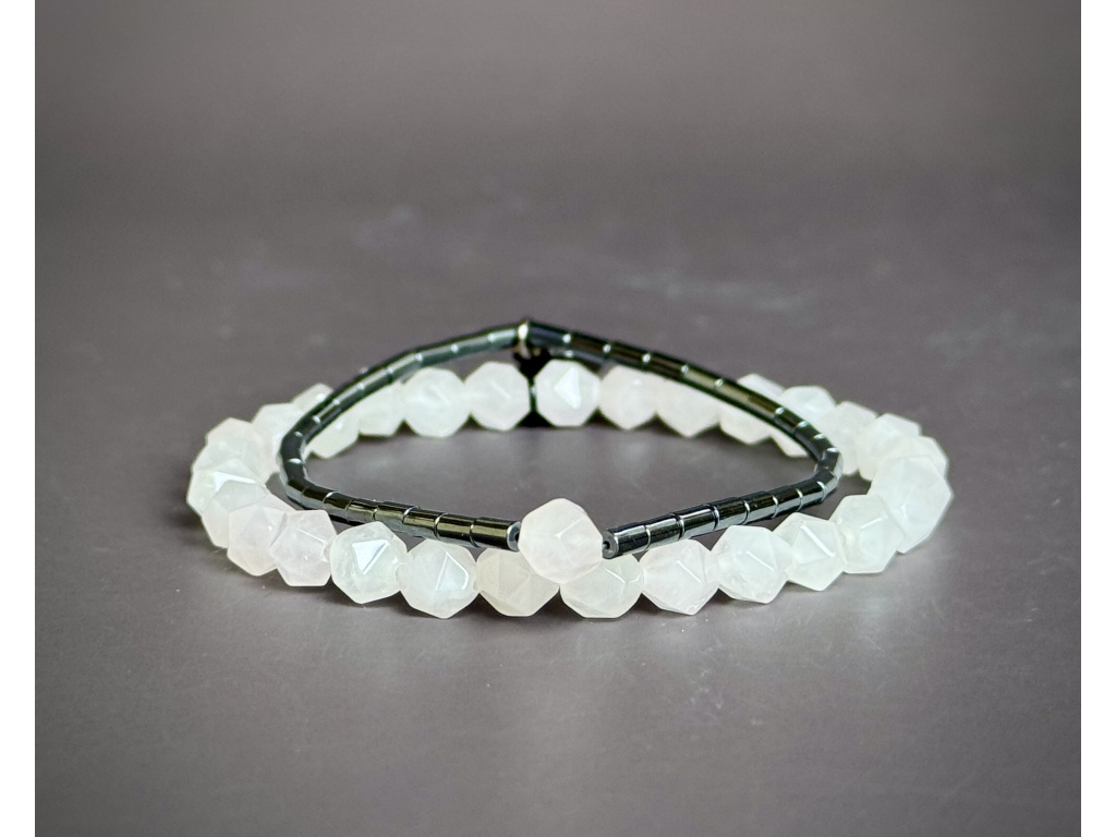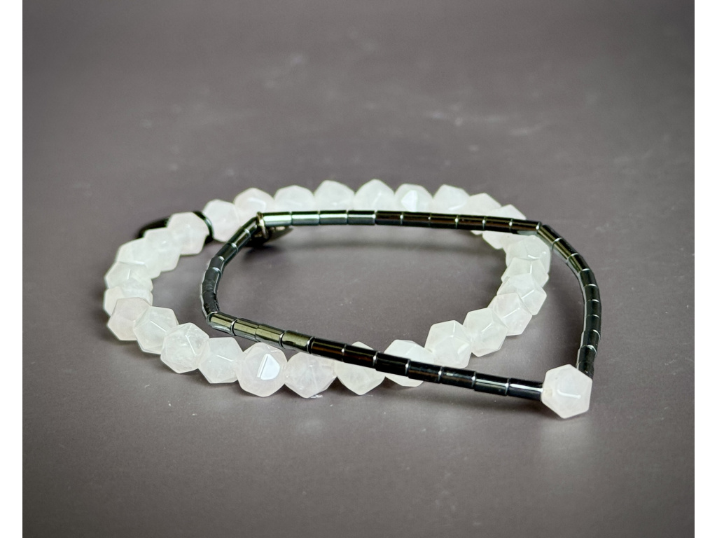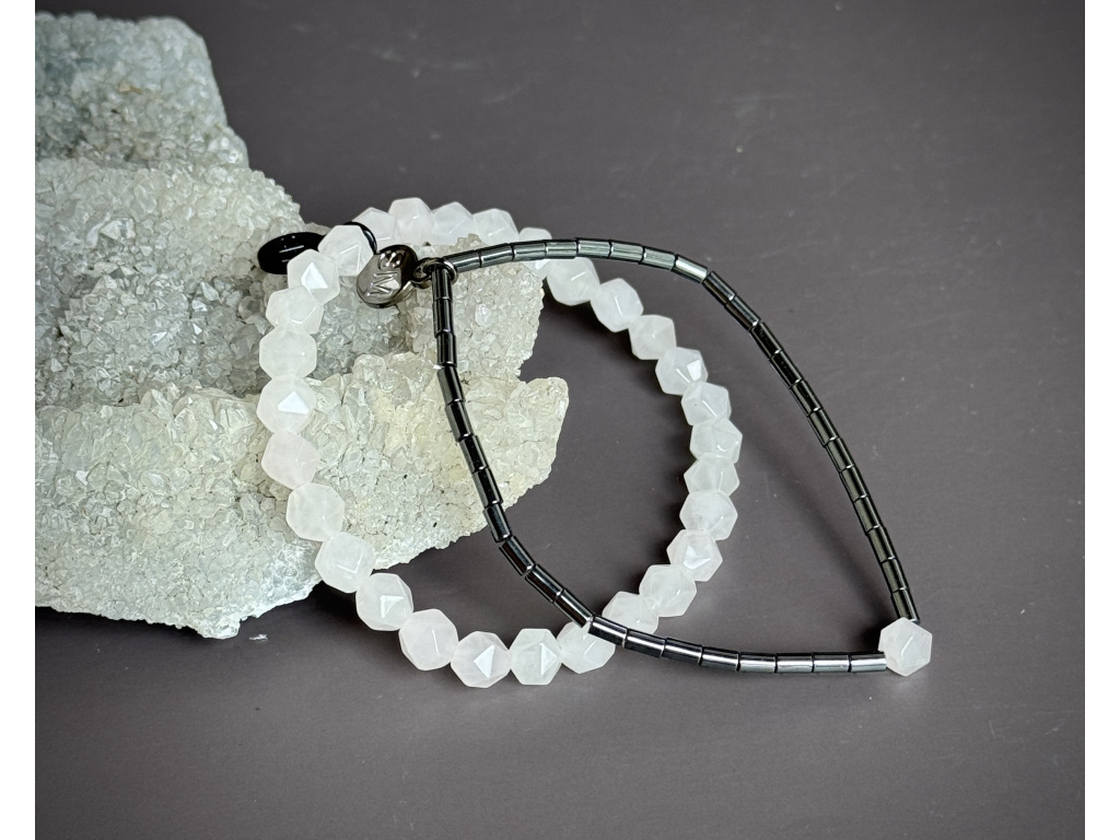 Kámen lásky, něhy a trpělivosti. Pomáhá navazovat i udržet harmonické vztahy, otevírá srdce, přitahuje laskavé energie a posiluje důvěru v sebe sama. Uklidňuje, podporuje psychickou rovnováhu a podporuje schopnost přijímat i dávat lásku. - Hematit – váleček 4 mm
