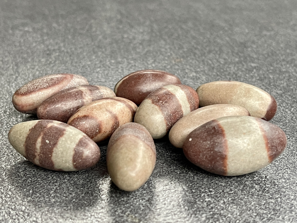 Tvar tohoto kamene, který je pro něj charakteristický, ztělesňuje v Tantře mužskou energii, dynamiku a znalosti. Různobarevné pruhy na kamenech se nazývají yoni a představují zase ženský princip. Podporuje ženskou energii, moudrost a intuici. Pochází z řeky Narmada ve střední Indii.