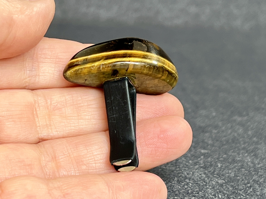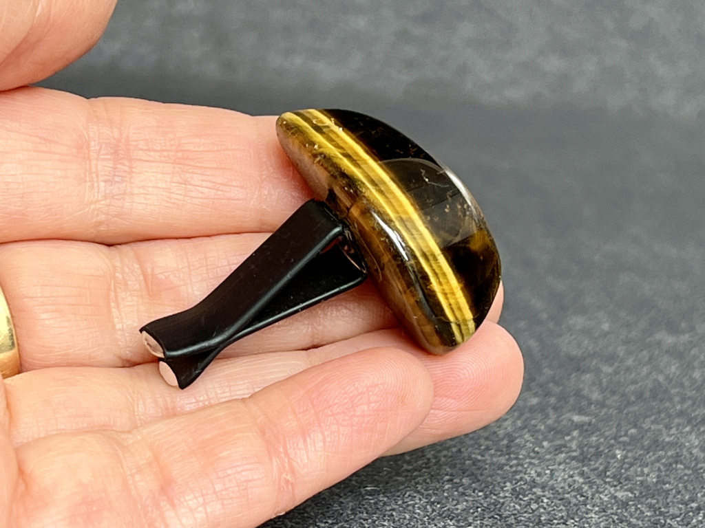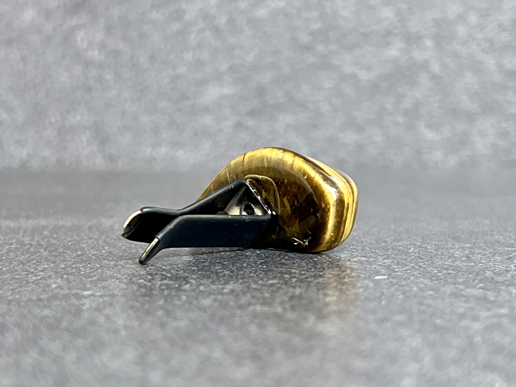 Tygří oko je křemen s hedvábným leskem a charakteristickým „kočičím“ efektem, v němž se světlo přelévá v pruzích zlaté, medové a hnědé. Tradičně je spojováno s odvahou, stabilitou a ostrou pozorností – pomáhá udržet jasnou mysl a rozvahu i v náročném provozu.