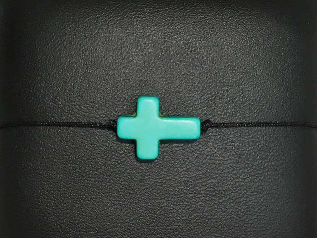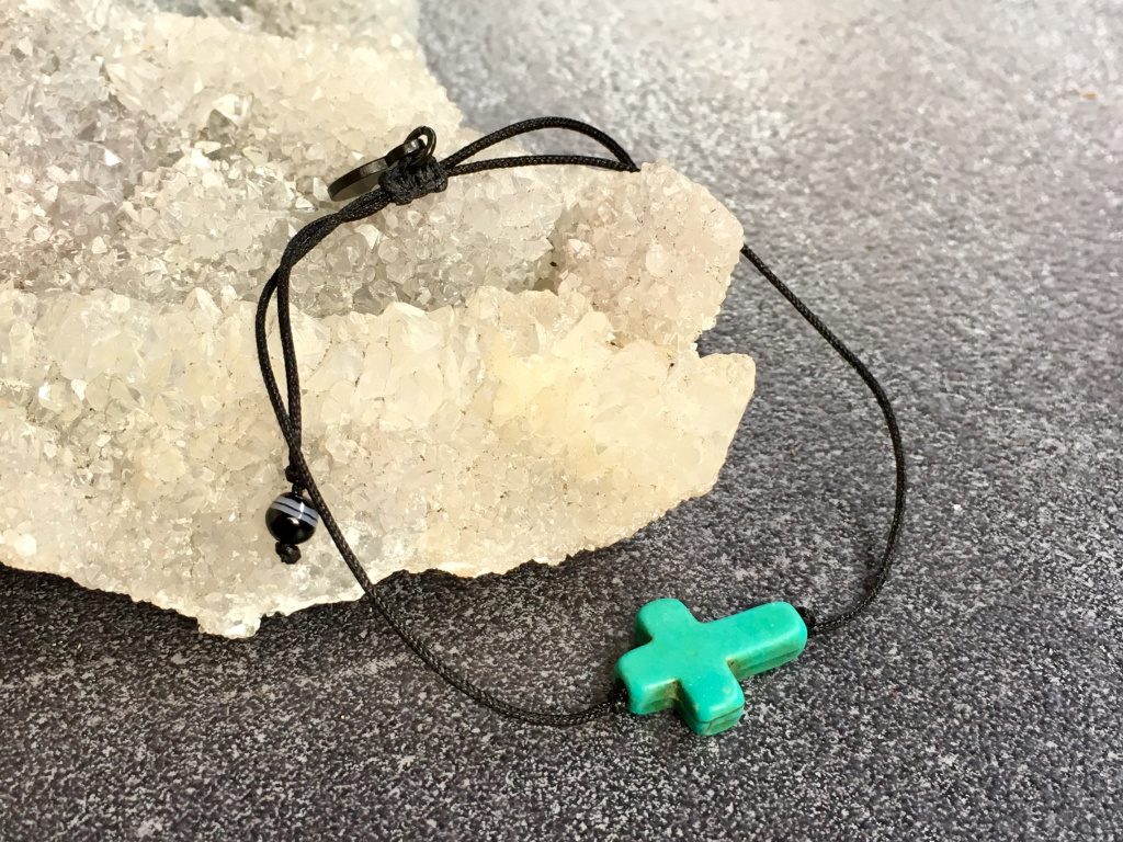 Jednoduchý a elegantní náramek s barveným magnezitem ve tvaru kříže, Vám dokáže významně pomoci při nepodmíněné lásce a v situacích, kdy jsou v vztahy s jinými lidmi problematické.