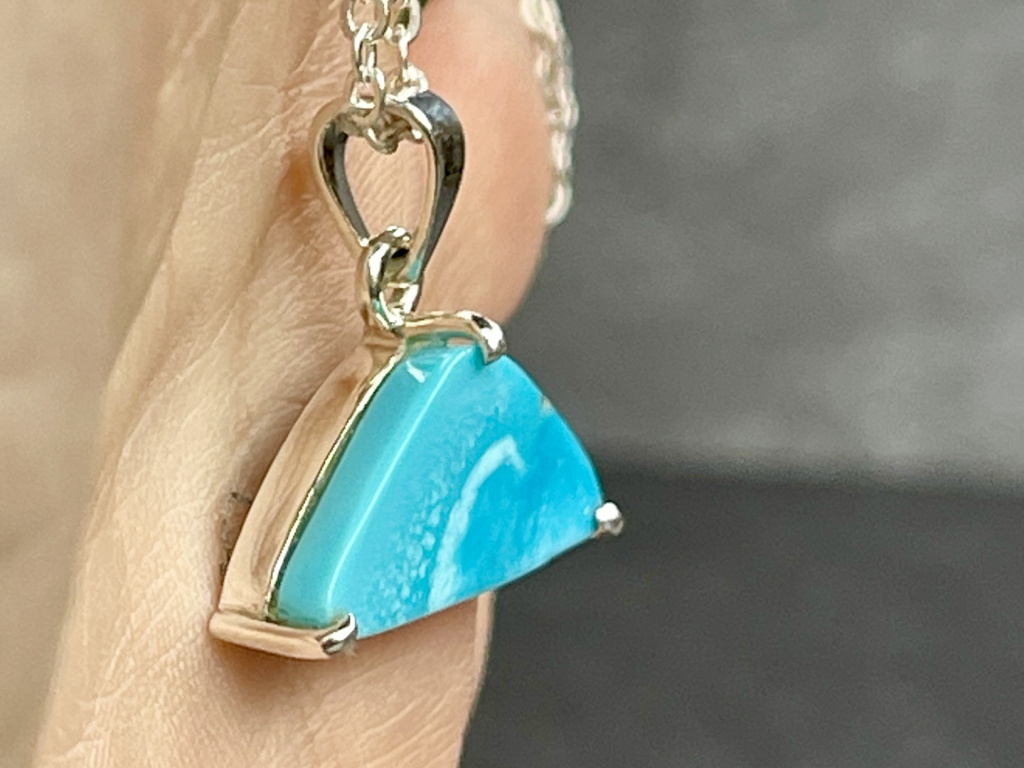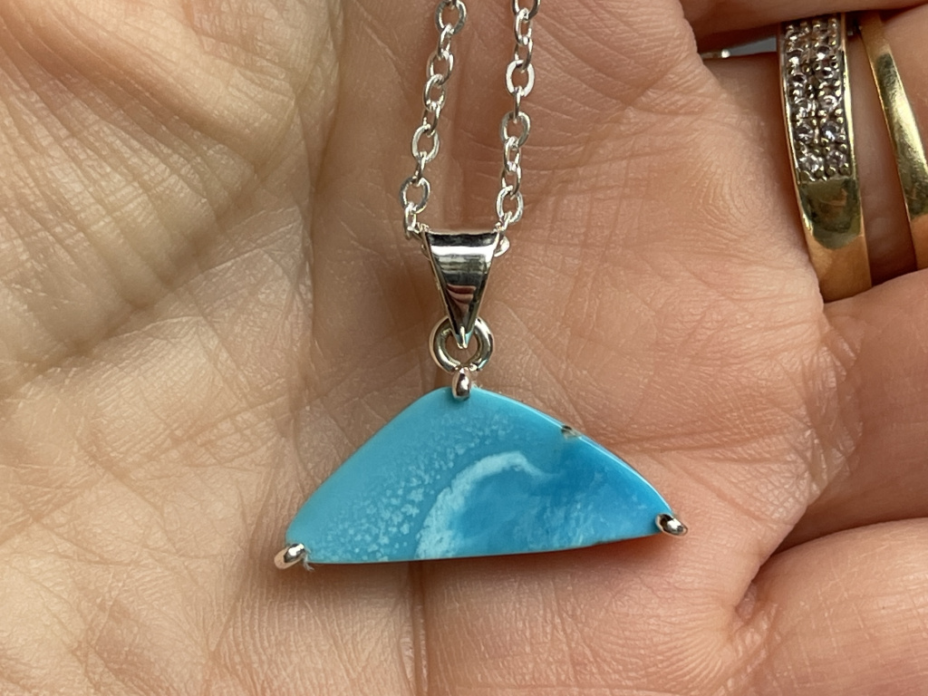 Představujeme Vám přívěsek z tyrkysu - kamene, který je symbolem ochrany, moudrosti a harmonie. Tento nádherný modrý kámen není jen estetickým doplňkem, ale také silným spojencem pro každého, kdo hledá vnitřní klid, rovnováhu a chtěl by posílit svou osobní sílu.