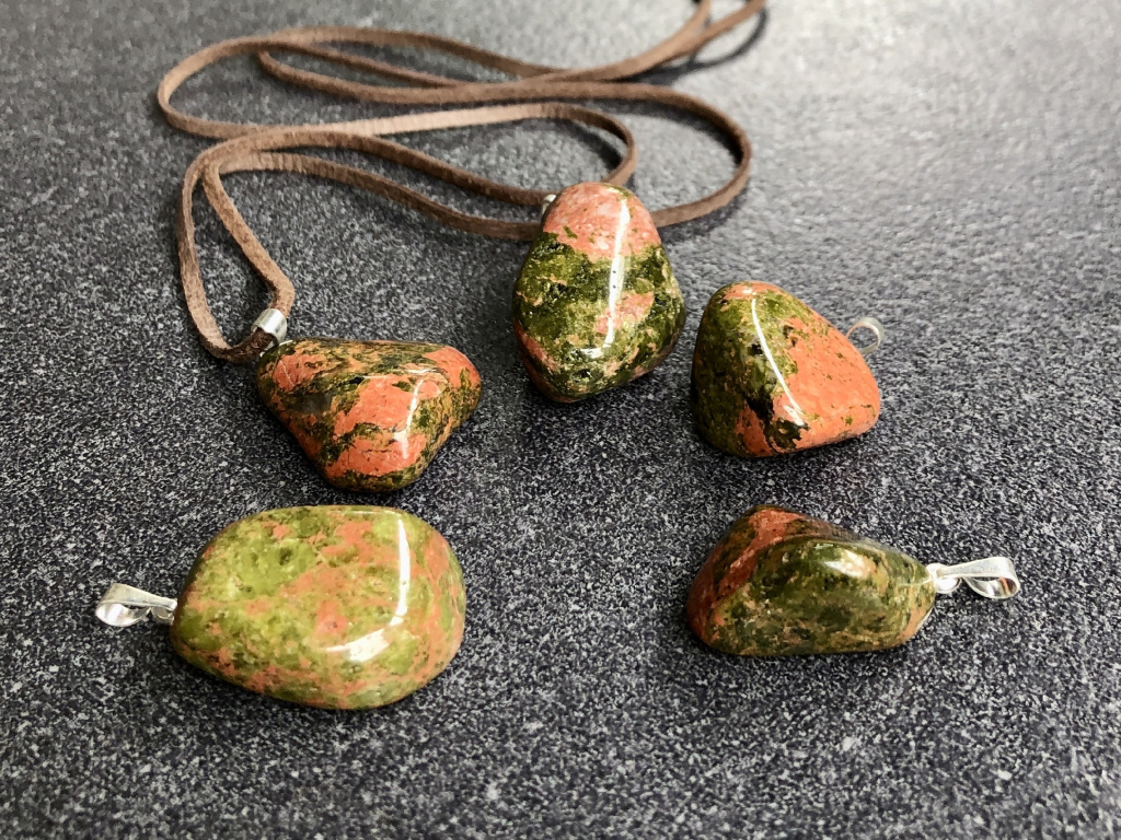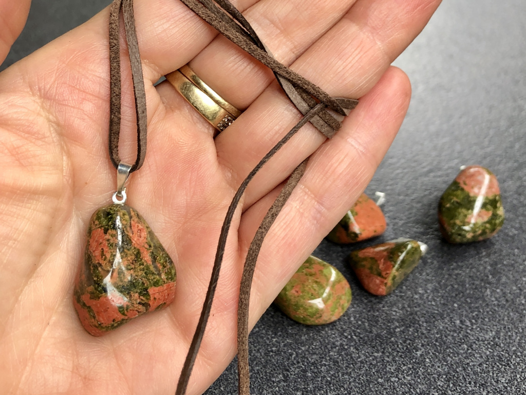 Přívěsek z unakitu pomáhá k uzemnění a odstraňuje zablokování.