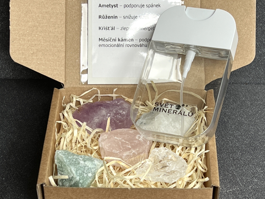 Jako dárek od nás dostanete elegantní rozprašovač, abyste mohli využít sílu této vody kdykoliv během dne. Rozprašovač vám umožní jednoduše aplikovat krystalovou vodu na vaši pokožku, kdykoliv pocítíte potřebu osvěžení nebo hydratace. Jeho praktické balení je ideální pro nošení v kabelce nebo batohu, takže můžete mít svůj zdroj energie a vitality stále při sobě. Aplikace krystalové vody pomocí rozprašovače je rychlá a efektivní, což vám umožní snadno zahrnout tento krok do vaší denní skincare rutiny.
